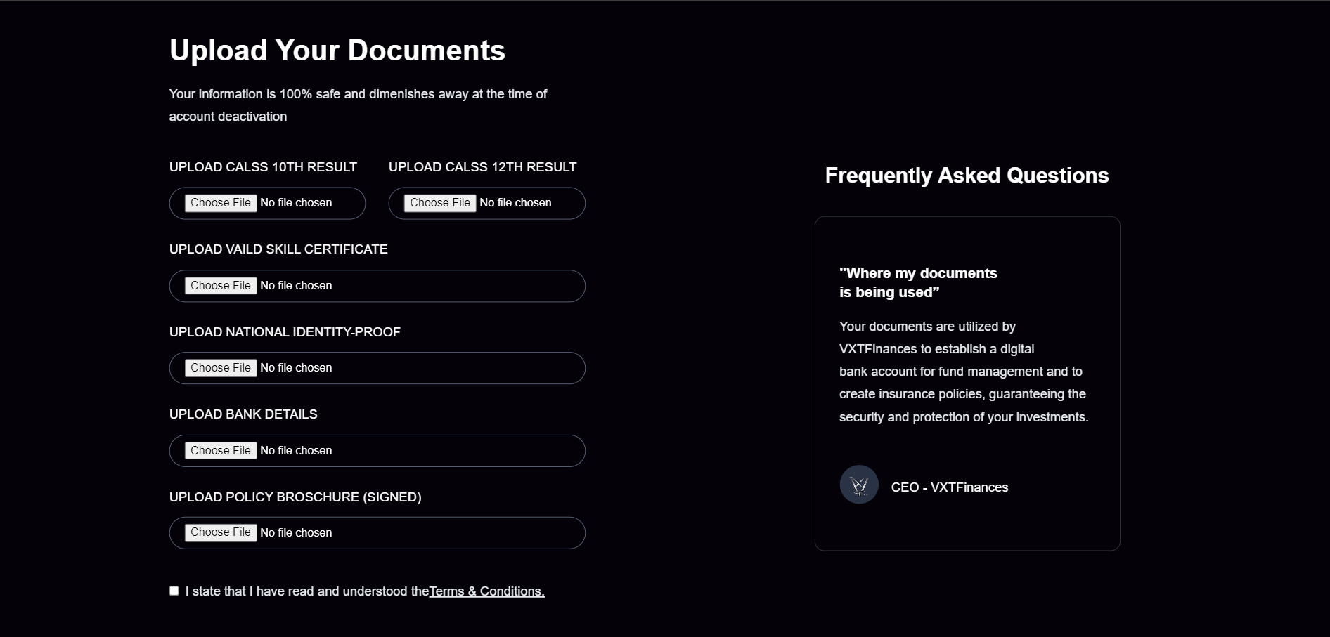"Once your documents are verified, you can access and use the VXTFinances website."