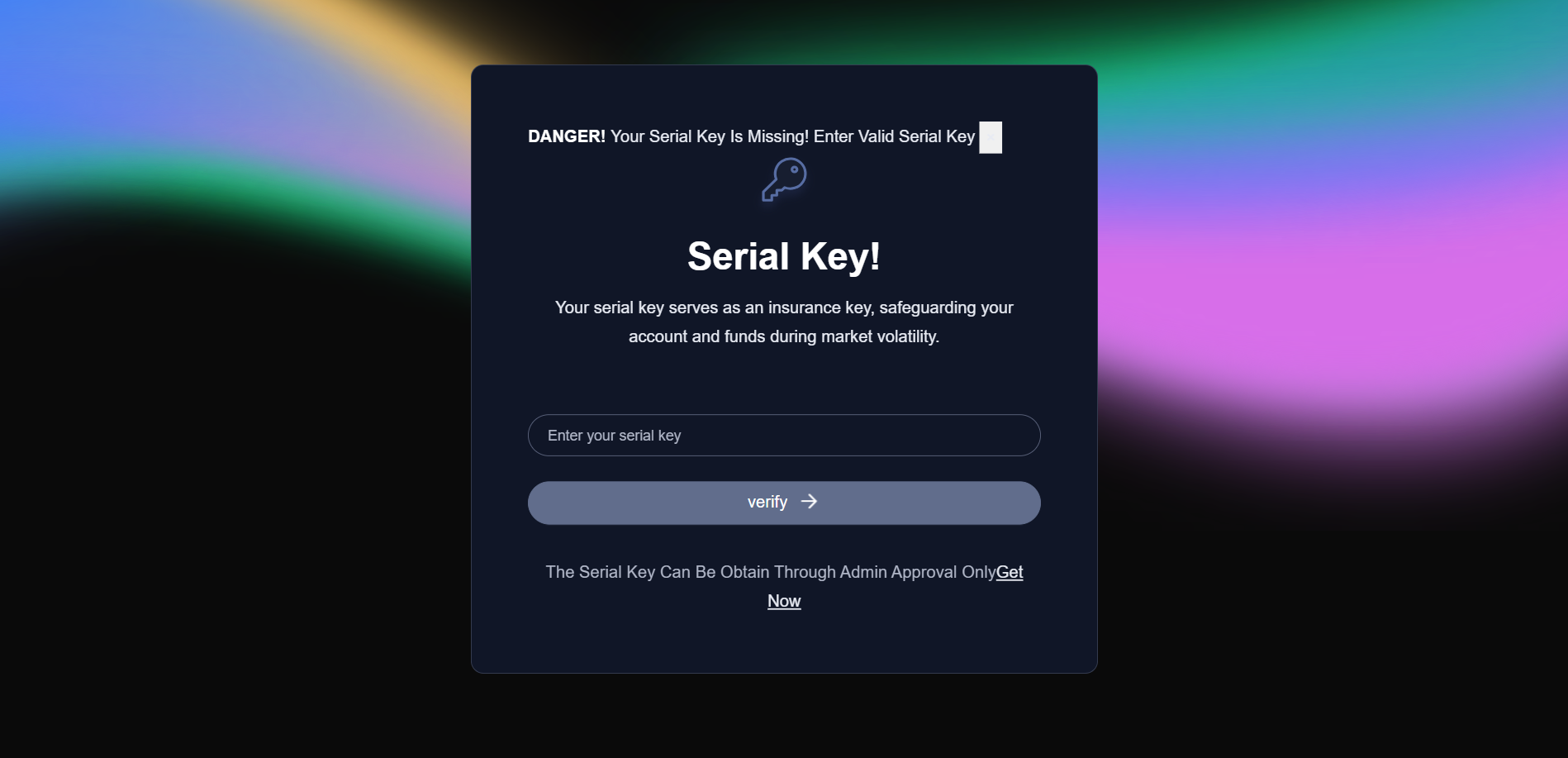 "Request the unique serial key by clicking on the "Get Serial Key" option."